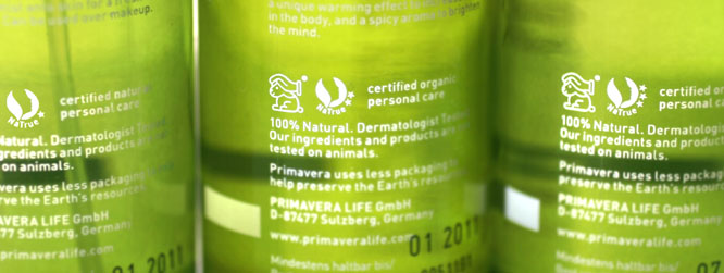 Όλα τα προϊόντα της PRIMAVERA, τα οποία εφαρμόζονται απευθείας στο δέρμα είναι πιστοποιημένα